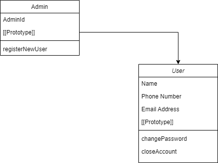 Este diagrama se traduciría en 2 clases: User y Admin. Al ejecutar el código y crear un objeto Admin, no se necesita una instancia de un User. El lenguaje usado simplemente usa los modelos para saber que propiedades asignarle a Admin.