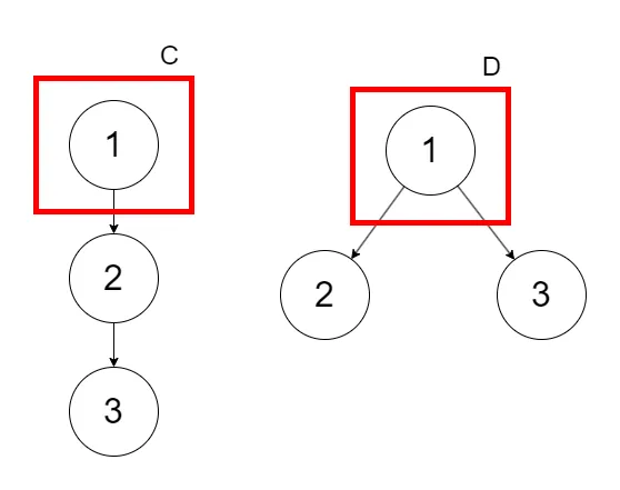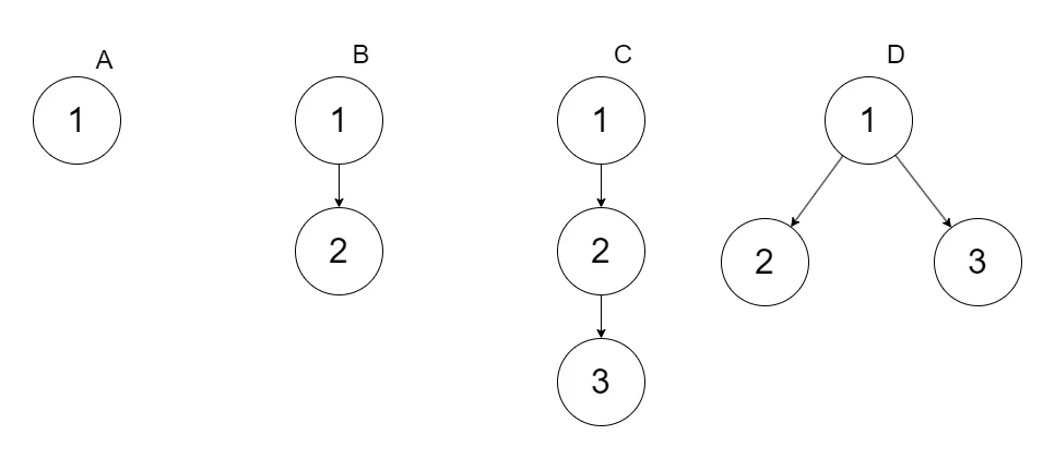 *Nada evita que un nodo sea tanto nodo hijo como nodo padre, Por ejemplo el nodo 2 del árbol C es hijo del nodo 1 y padre del nodo 3.