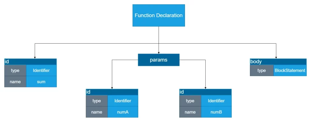 Function Declaration tiene 3 nodos hijos: id, params y body.